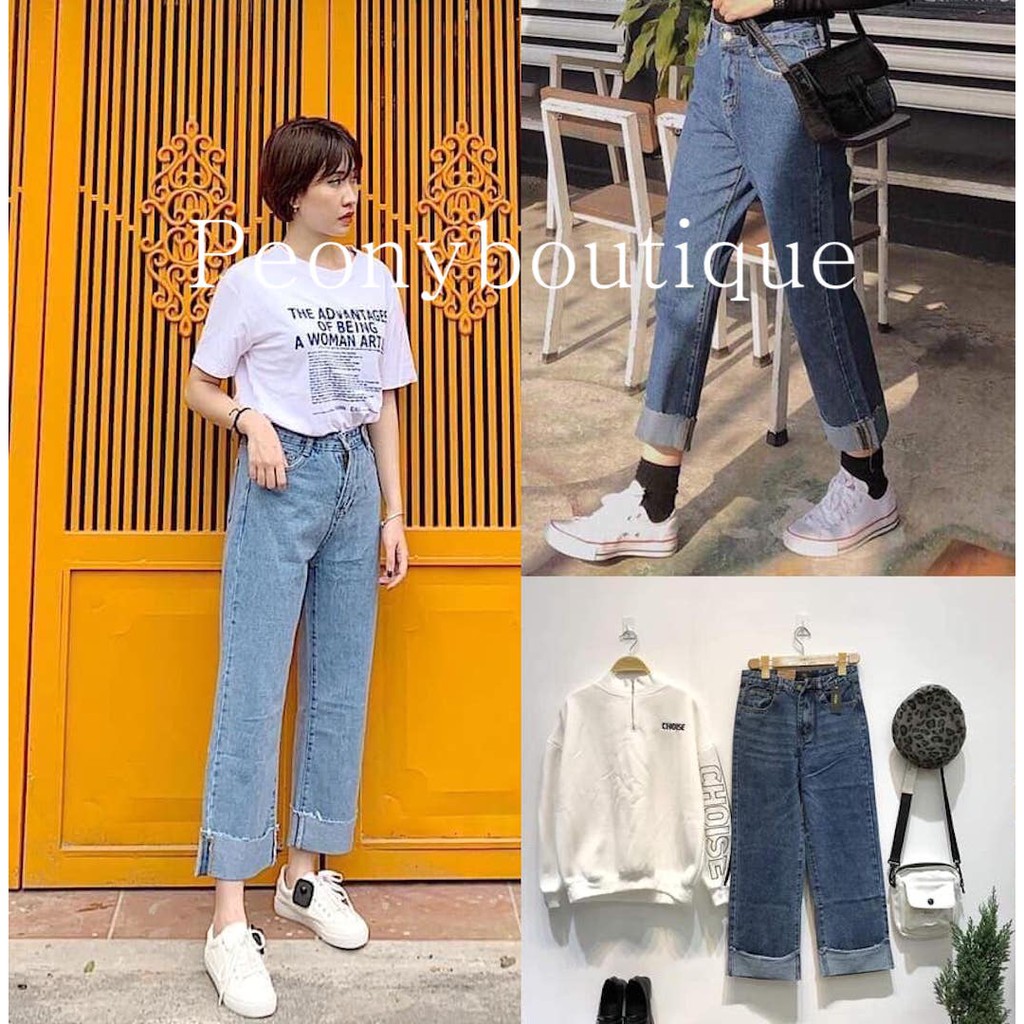 chỉ còn 125,100đ [Mã WA23150 giảm 20K đơn 150K] Quần jean ống rộng nữ - Quần bò cullotes gập gấu CỰC ĐẸP